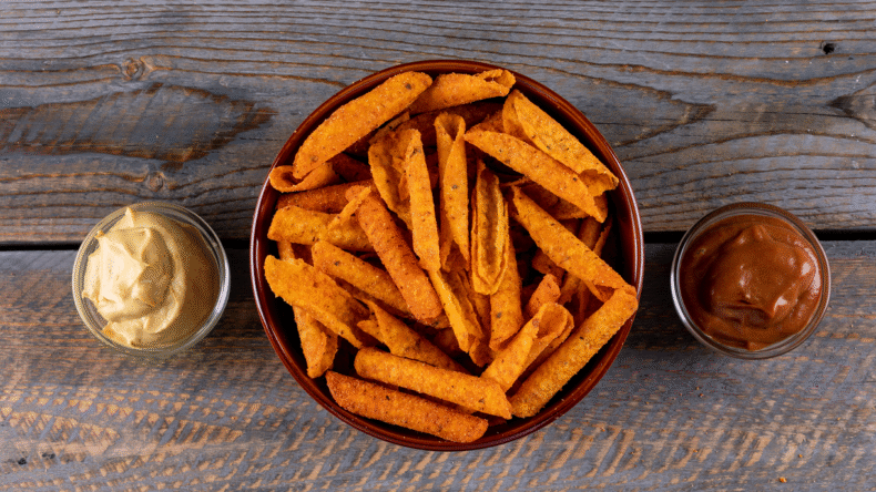 Crispy roasted papads with assorted tangy, spicy pickles on the side.