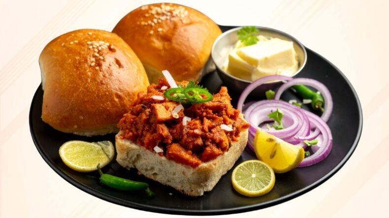 Mini buns served with buttery, spiced mashed vegetables – Mumbai street food style.