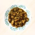 Chickpeas cooked in tangy onion-tomato gravy, flavored with Indian masalas.